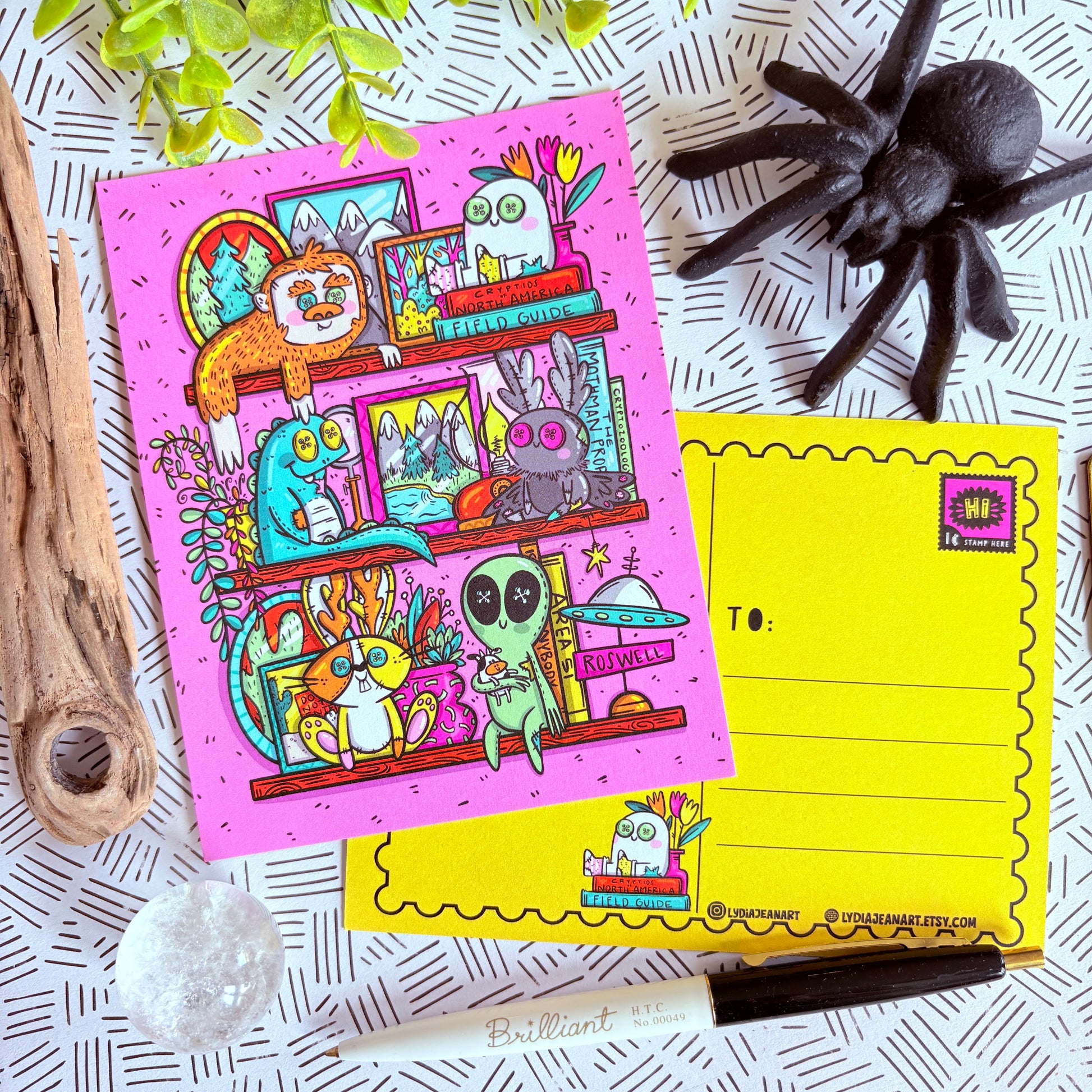 Send spooky vibes with this spooky postcard set! Featuring fun and friendly illustrations from Lydia Jean Art — These postcards are perfect for mailing to friends, decorating your space, or adding to your stationery collection. Each set includes 4 postcards printed on sturdy matte cardstock. Great for sending greetings, party invites, or just treating yourself to some spooky cute art!