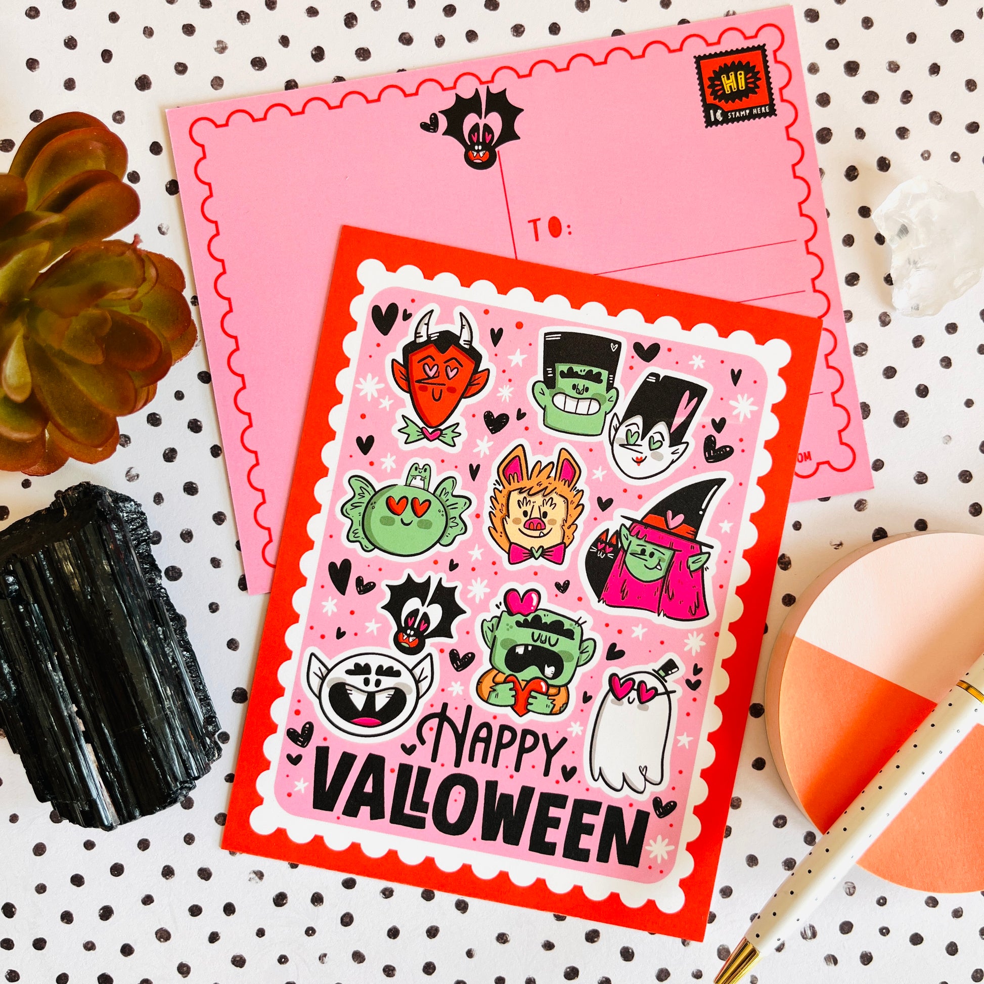 Send spooky vibes with this spooky postcard set! Featuring fun and friendly illustrations from Lydia Jean Art — These postcards are perfect for mailing to friends, decorating your space, or adding to your stationery collection. Each set includes 4 postcards printed on sturdy matte cardstock. Great for sending greetings, party invites, or just treating yourself to some spooky cute art!